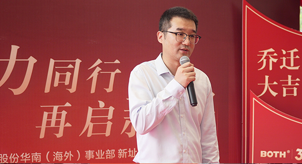 公司高級副總經(jīng)理,華南(海外)事業(yè)部總經(jīng)理張紀(jì)勇先生首先發(fā)表致辭,他指出,喬遷新址提升的不僅是辦公環(huán)境,更是企業(yè)發(fā)展平臺和目標(biāo)。希望事業(yè)部全體員工,滿懷信心,繼續(xù)以朝氣蓬勃,積極向上的姿態(tài),拼搏奮進(jìn),迎接新挑戰(zhàn)。