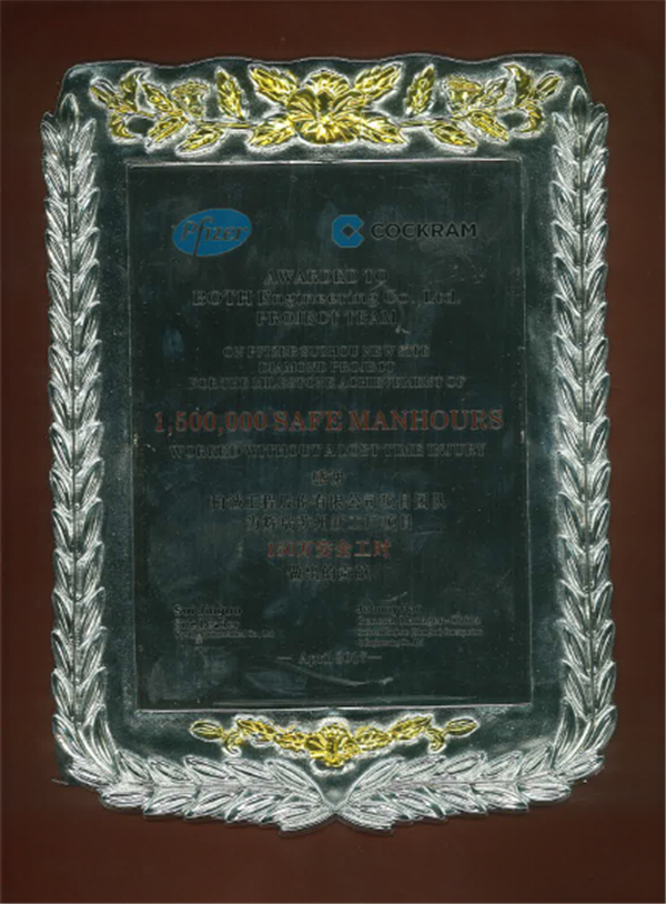 蘇州輝瑞項(xiàng)目喜獲150萬(wàn)安全工時(shí)獎(jiǎng)