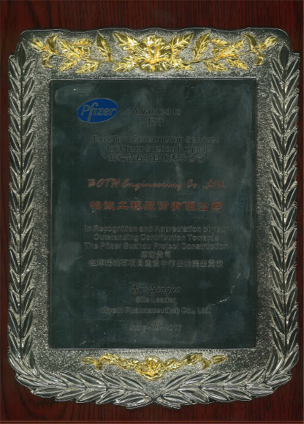2017年4月,我司在蘇州輝瑞鉆石項(xiàng)目中喜獲150萬(wàn)安全工時(shí)獎(jiǎng);2017年6月,項(xiàng)目團(tuán)隊(duì)再獲 “突出貢獻(xiàn)獎(jiǎng)“ 獎(jiǎng)牌。