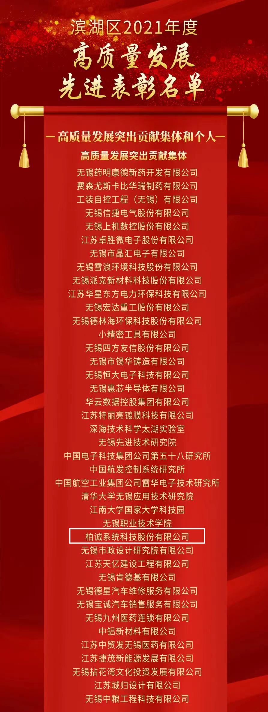 2022年5月4日,無錫市濱湖區(qū)區(qū)委區(qū)政府召開全區(qū)2021年度綜合考核總結(jié)表彰大會(huì),通報(bào)全區(qū)2021年度綜合考核(評(píng)價(jià))結(jié)果,對(duì)在區(qū)年度考核和一季度”擔(dān)使命作貢獻(xiàn)“季季評(píng)中表現(xiàn)出色的先進(jìn)集體和個(gè)人進(jìn)行表彰。BOTH憑借在推動(dòng)和服務(wù)高質(zhì)量發(fā)展中取得的顯著成效,獲評(píng)濱湖區(qū)2021年度”高質(zhì)量發(fā)展突出貢獻(xiàn)集體“。
