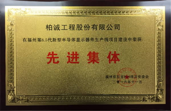 2016年11月,公司在福州京東方第8.5代線新型半導(dǎo)體顯示器件生產(chǎn)線項(xiàng)目中榮獲“先進(jìn)集體”獎(jiǎng)。