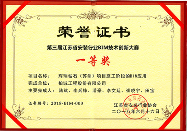 近期,在江蘇省安裝協(xié)會主辦的2018第三屆江蘇省安裝行業(yè)BIM技術創(chuàng)新大賽中,公司參賽項目“輝瑞鉆石(蘇州)項目施工階段的BIM應用”喜獲一等獎,特此通報。