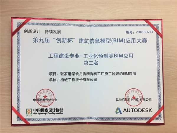2018年9月,公司張家港某食用香精香料的BIM應(yīng)用項目,在第九屆“創(chuàng)新杯”建筑信息模型(BIM)應(yīng)用大賽中表現(xiàn)優(yōu)秀,喜獲工程建設(shè)專業(yè)—工業(yè)化預(yù)制類BIM應(yīng)用第二名,特此通報。